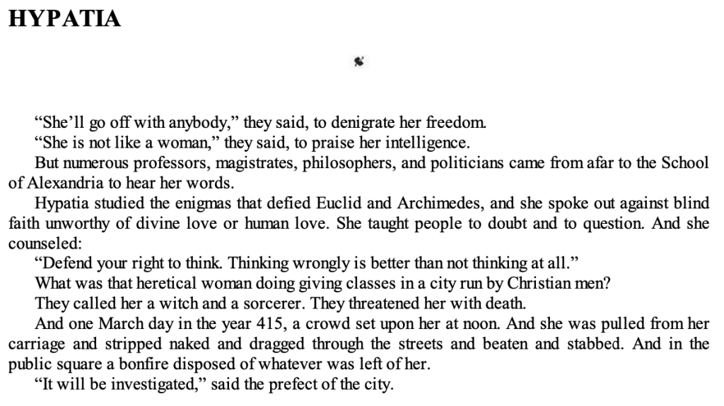 Observations about Theodora, Urraca, Hypatia and Olympia in “Mirrors” by Galeano